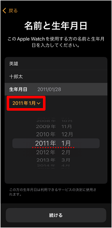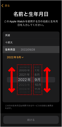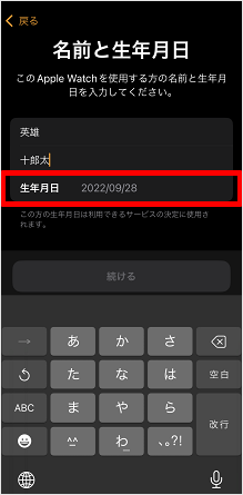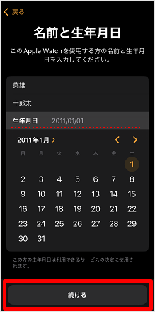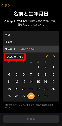 誕生月のカレンダー表示に切り替わるので、[誕生日]をタップします。
