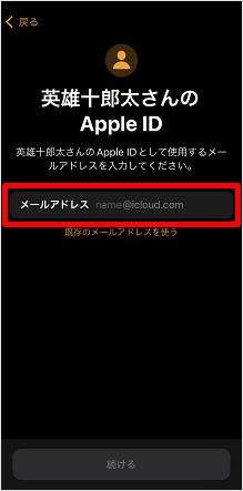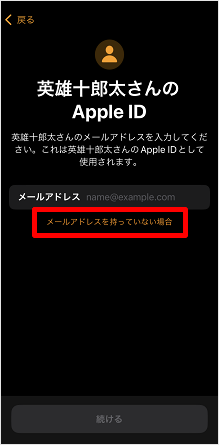 登録するファミリーメンバーがメールアドレスを持っている場合は、メールアドレスを入力します。