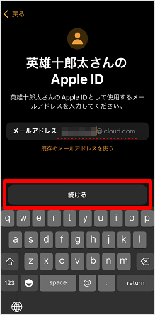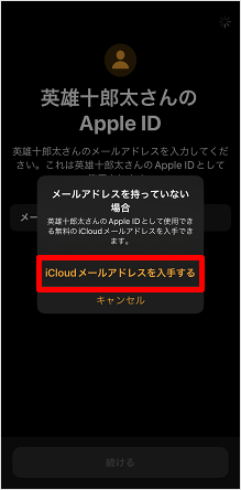 メールアドレス入力欄をタップして、取得したいicloud.comのメールアドレスを入力します。
