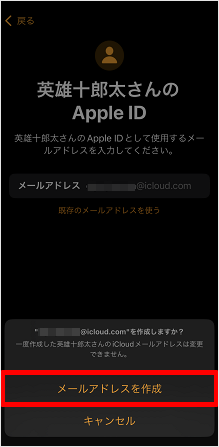 ※ここで取得したicloud.comのメールアドレスがApple IDとなります。