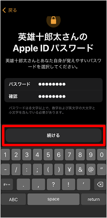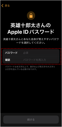 メールアドレスの入力が完了したら、[続ける]をタップします。