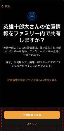 ファミリーメンバーとの共有/承認についての設定画面が表示されます。