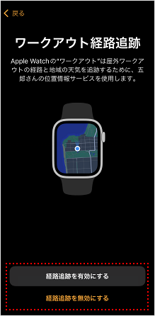 Apple Watchのワークアウト経路追跡を有効にするか無効にするかを選択してタップします。