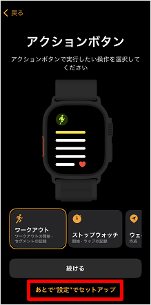 アクションボタンの設定画面が表示されます。ここでは[あとで"設定"でセットアップ]をタップします。