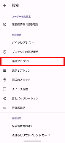 [通話アカウント]をタップします。