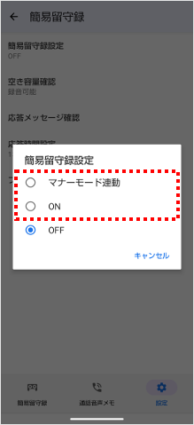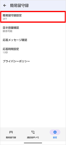 簡易留守メモ(伝言メモ)機能は、電話アプリで設定できます。