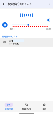 録音された簡易留守メモ(伝言メモ)は、電話アプリで再生できます。