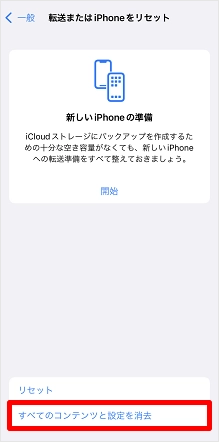 [すべてのコンテンツと設定を消去]をタップします。