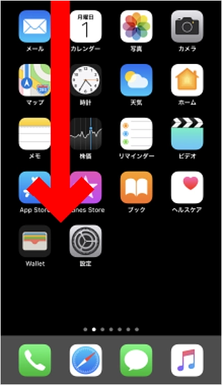 中央より左寄りの部分から下に向かって画面をスワイプ(指先でなぞる)します。