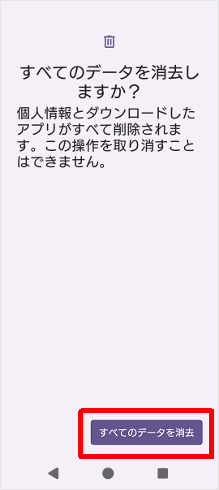[すべてのデータを消去]をタップします。 ※画面に記載されているデータのほかに、外部SDカードの暗号化されたデータも読み取れなくなります。