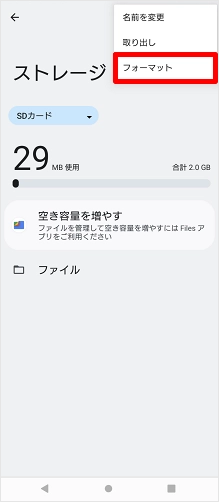設定アプリで、microSDカード内の全データを初期化することができます。