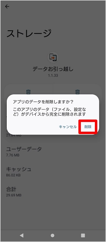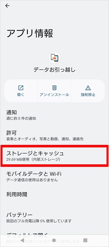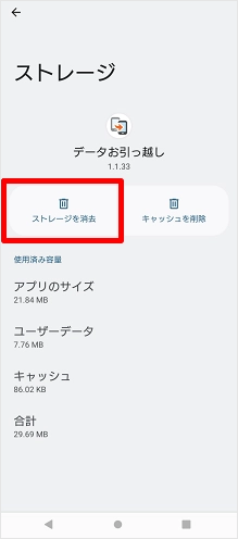 初期化するアプリをタップします。 ※ここでは[データお引っ越しアプリ]をタップします。