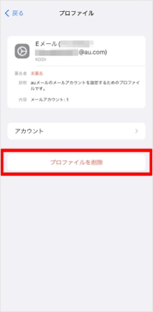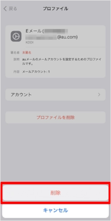 削除]をタップします。以上でプロファイルの削除の操作は完了です。(次の手順へお進みください)
