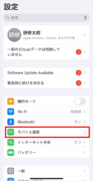 [モバイル通信]をタップします。