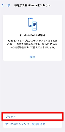 [転送またはiPhoneをリセット]をタップします。