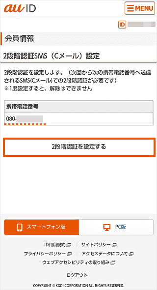 「au ID会員情報サイト」へアクセスし、au IDでログインします。