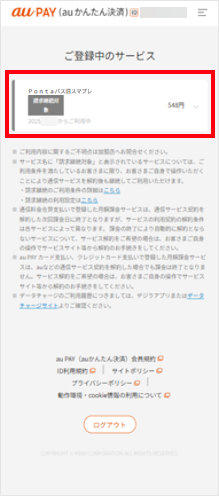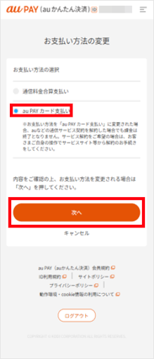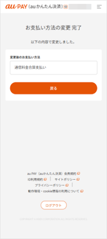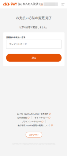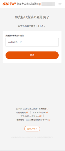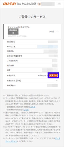 「ご登録中のサービス」ページでau PAY カード支払いに変更できます。