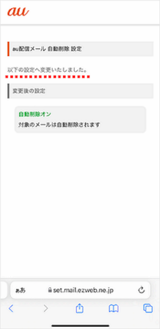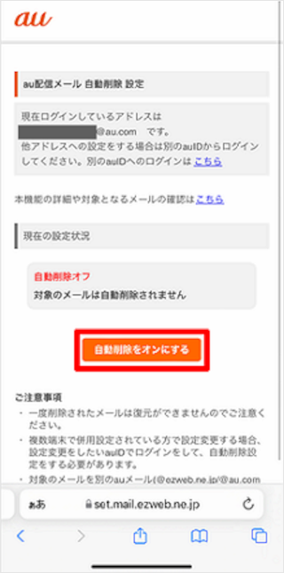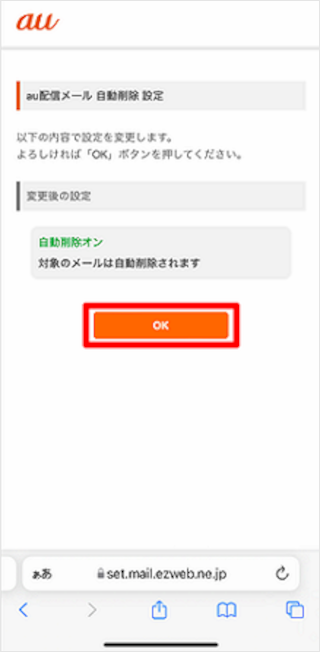 [auからのお知らせメール自動削除設定]をタップします。