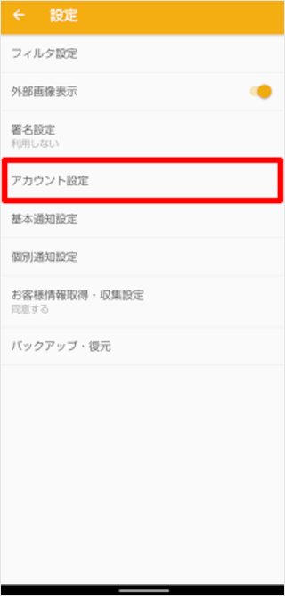 [アカウント設定]をタップします。