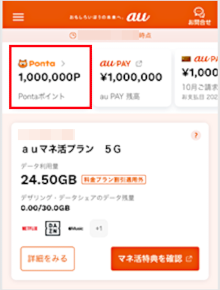 Pontaポイントの加算予定は「My au(アプリ)」の「Pontaポイント」で確認することができます。