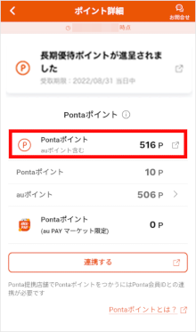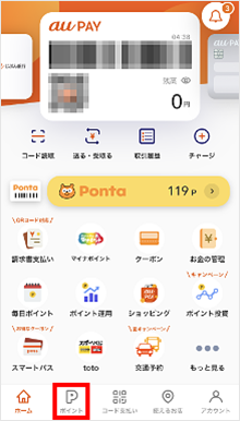 Pontaポイントの加算予定は「au PAY アプリ」の「ポイント」で確認することができます。