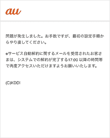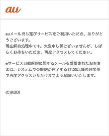au PAY(auかんたん決済)でご指定の支払い方法で決済が確認できなかった場合、「auメール持ち運び」サービスは自動解約されます。