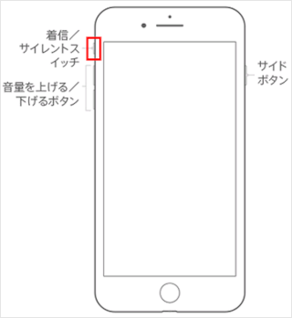 着信音が鳴らない場合は、着信/消音スイッチ(マナーモード)や、音量などの設定をご確認いただき、着信音が鳴るように設定を変更します。