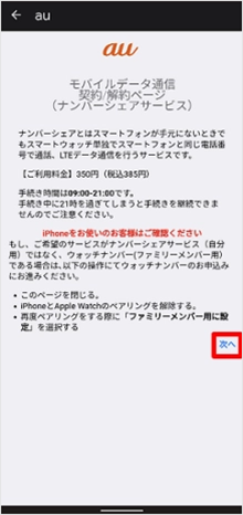 ナンバーシェアに関する内容を確認し、[次へ]をタップします。