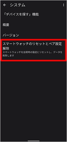 [スマートウォッチのリセットとペア設定解除]をタップします。