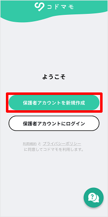 [保護者のアカウントを新規作成]をタップします。