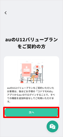 「コドマモ」をご利用いただくには、U12バリュープランにご加入後、保護者さまは「コドマモアプリ」、お子さまは「コドマモ Kidsアプリ」のダウンロード・初期設定が必要です。