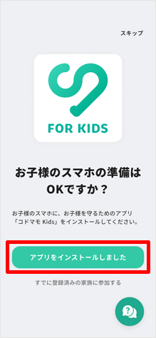 本手順では、お子さまの「コドマモ Kidsアプリ」の設定方法をご案内します。