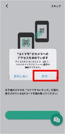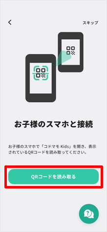 [QRコードを読み取る]をタップして、STEP2でお子さまのスマートフォンに表示されたQRコードを読み取ります。