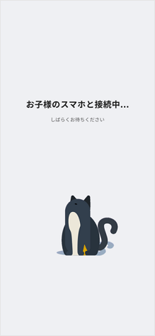 保護者さまのアプリと接続中のためしばらく待ちます。 次に、お子さまのスマートフォンと保護者さまのスマートフォンを接続します。STEP3へお進みください。
