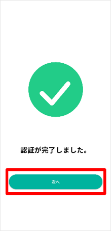 認証が完了しました。[次へ]をタップします。