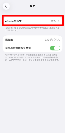 [iPhoneを探す][“探す”ネットワーク][最後の位置情報を送信]のスイッチがオンになっていることを確認されたら、操作は完了です。 ※オフの場合はスイッチをタップしてオンにしてください。