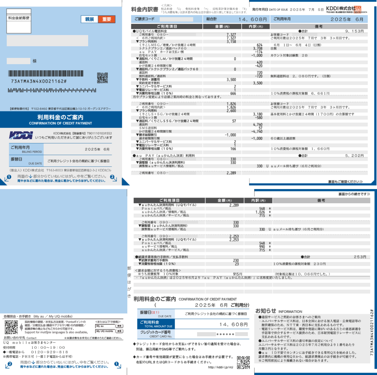 • 2025年7月請求(6月利用分)より、「auかんたん決済利用料」は「au PAY(auかんたん決済)利用料」へ変更しました。
