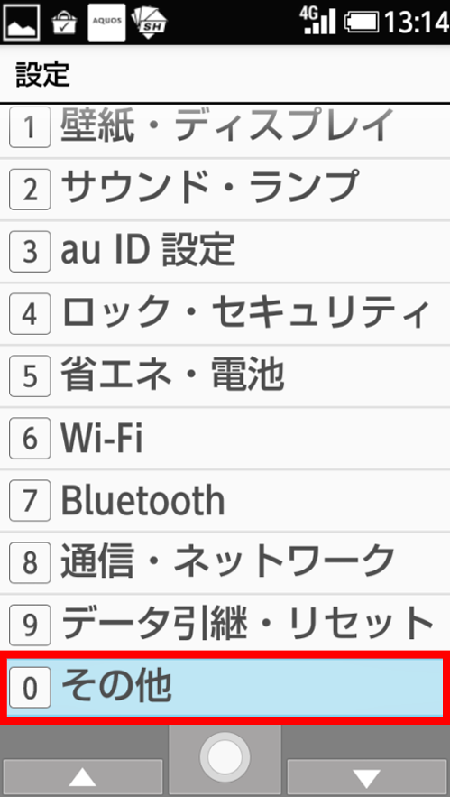 メインメニューから「設定」を選択