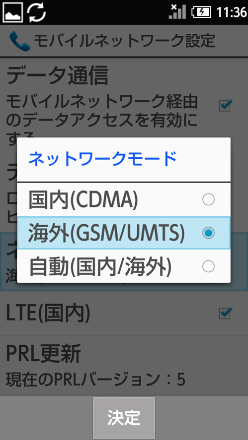 ネットワークモードが「国内(CDMA)」または「自動(国内/海外)」になっているかご確認ください。