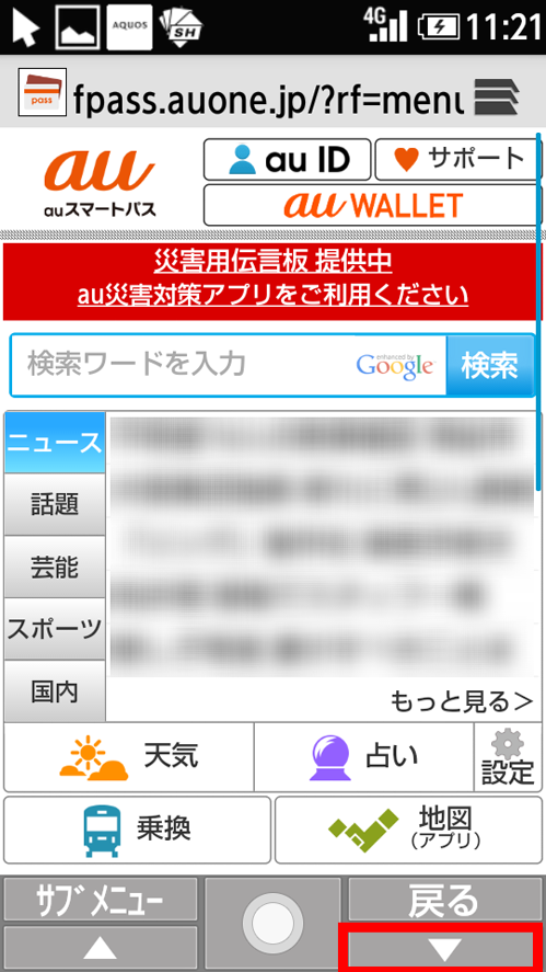 メインメニューから「auスマートパス」を選択