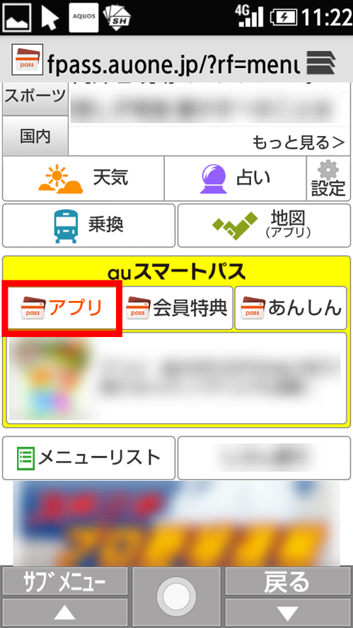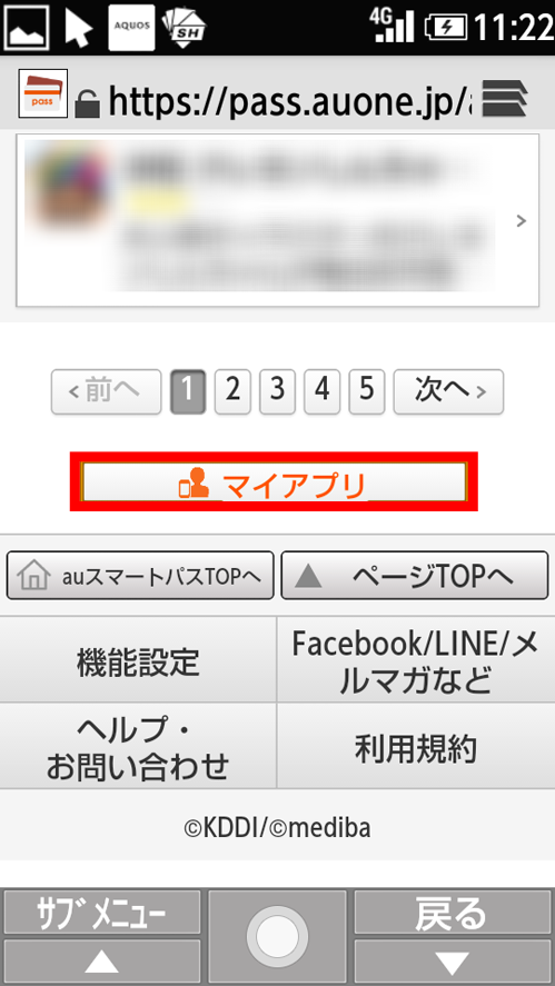 auスマートパスの「アプリ」を選択