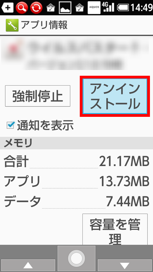 アンインストールをするアプリを選択