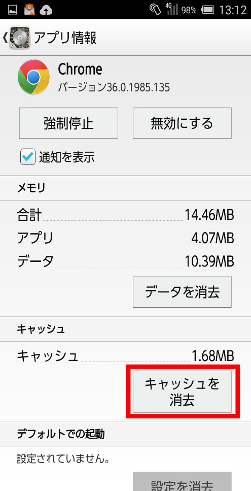 注1) アプリにより、キャッシュ消去ができない場合があります。