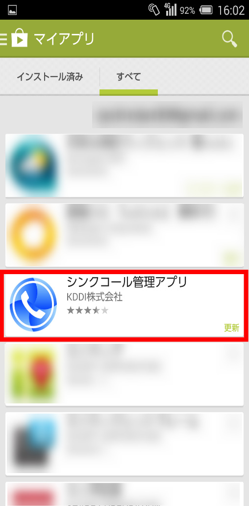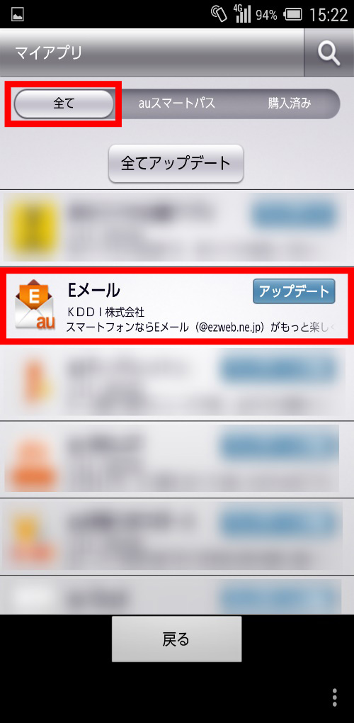 最新のアプリがあるかを確認:auMarketアプリを選択⇒「マイアプリ」⇒「全て」⇒該当のアプリに「アップデート」と表示されている場合は、最新のアプリがあります。