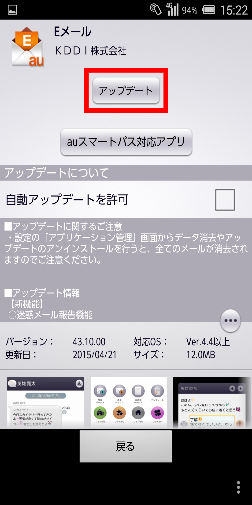 - 画面は、InfobarA03(Android4.4)の表示例です。機種やAndroidのバージョンにより異なります。