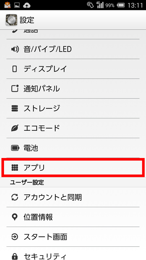 <アプリのキャッシュ消去方法>