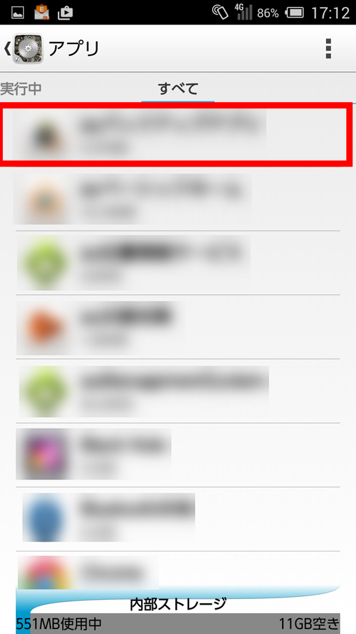 設定⇒アプリ⇒画面上にある「すべて」を選択⇒該当のアプリを選択⇒キャッシュを消去