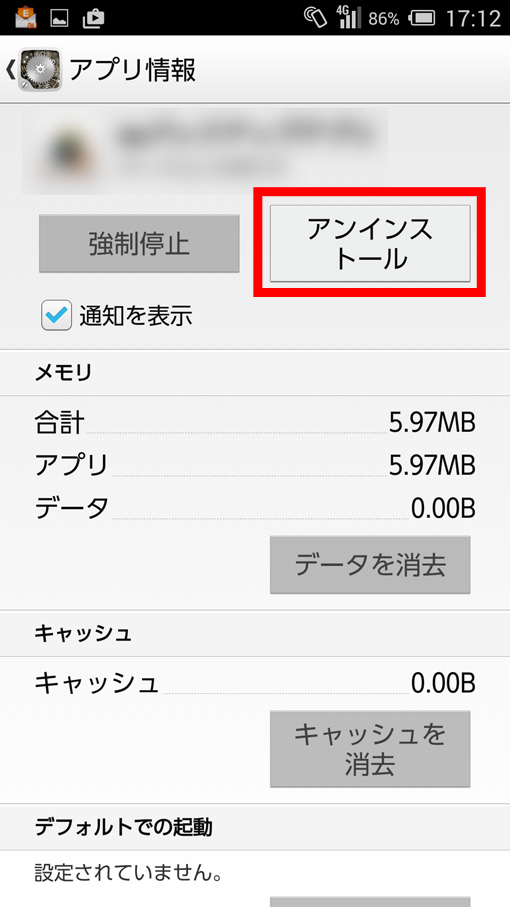 「アンインストール」が表示されない場合は、そのアプリはアンインストールできません。注意! アンインストールすると、そのアプリで利用しているデータが削除されます。